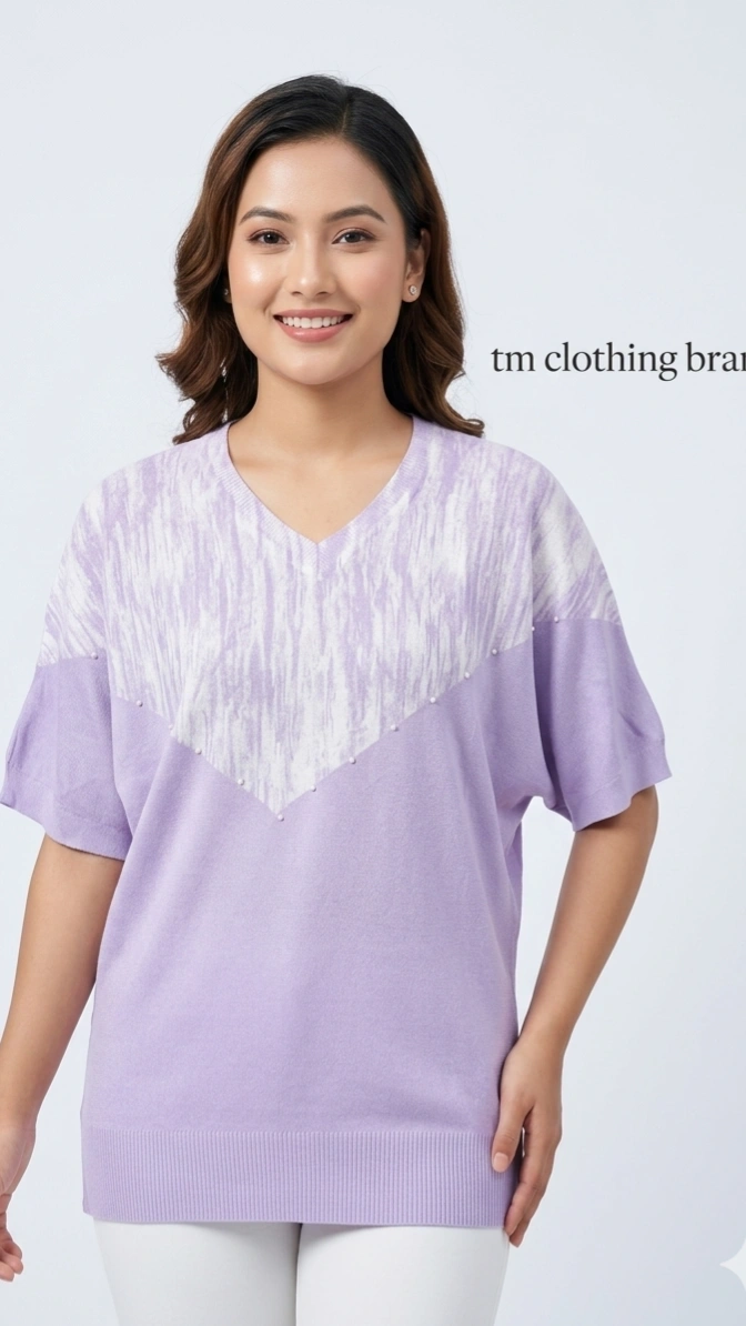 यो Lavender V-Neck Casual Top simple तर stylish डिजाइनमा उपलब्ध छ। Soft र breathable fabric बाट बनेको यस टपमा V-neck design र modern color combination रहेको छ, जसले elegant र relaxed look दिन्छ। Half sleeve style र loose fit भएकाले गर्मी मौसममा लगाउन निकै comfortable हुन्छ।