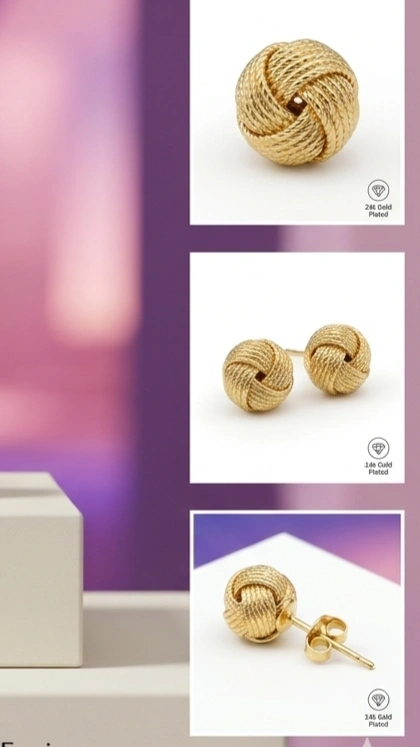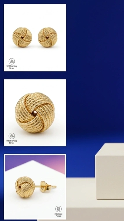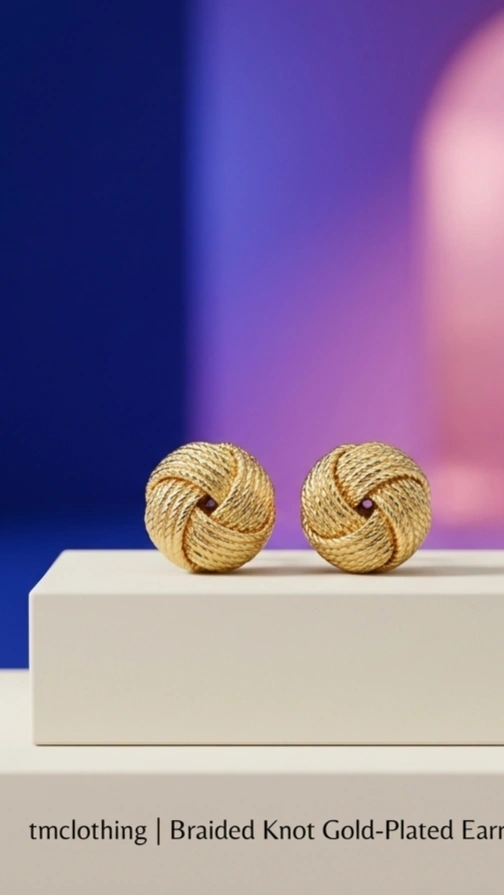 Classic knot डिजाइनमा बनेको यी Braided Knot Gold Earrings ले simple तर elegant look दिन्छ। हल्का वजन र premium gold finish भएकोले daily wear तथा office look दुबैका लागि perfect choice हो।