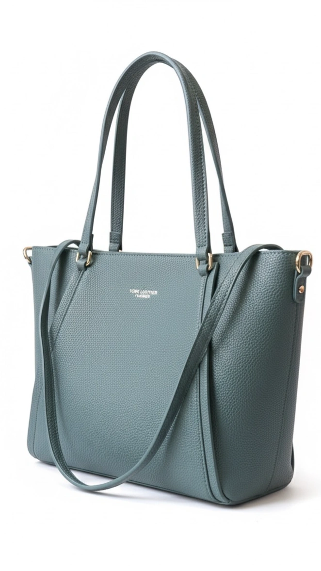 यो स्टाइलिश लेदर टोट ब्याग तपाईंको दैनिक प्रयोगका लागि उत्कृष्ट छनोट हो। उच्च गुणस्तरको कृत्रिम छालाबाट बनेको यो ब्याग मजबुत र आकर्षक देखिन्छ। यसको गहिरो निलो-हरियो रङले आधुनिक र प्रोफेशनल लुक दिन्छ। लामो ह्याण्डल र एडेबल स्ट्र्याप भएकोले यसलाई हातमा वा काँधमा सजिलै बोकिन सक्छ।