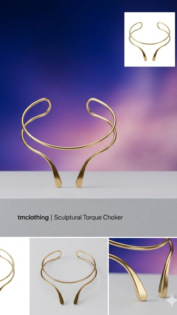 साधारण तर आकर्षक डिजाइन भएको यो Sculptural Torque Choker ले तपाईंको लुकलाई तुरुन्तै एलिगेन्ट बनाउँछ। हल्का वजन, मिनिमल डिजाइन र प्रिमियम गोल्ड फिनिसले यसलाई दैनिक तथा पार्टी दुवैका लागि उपयुक्त बनाउँछ।